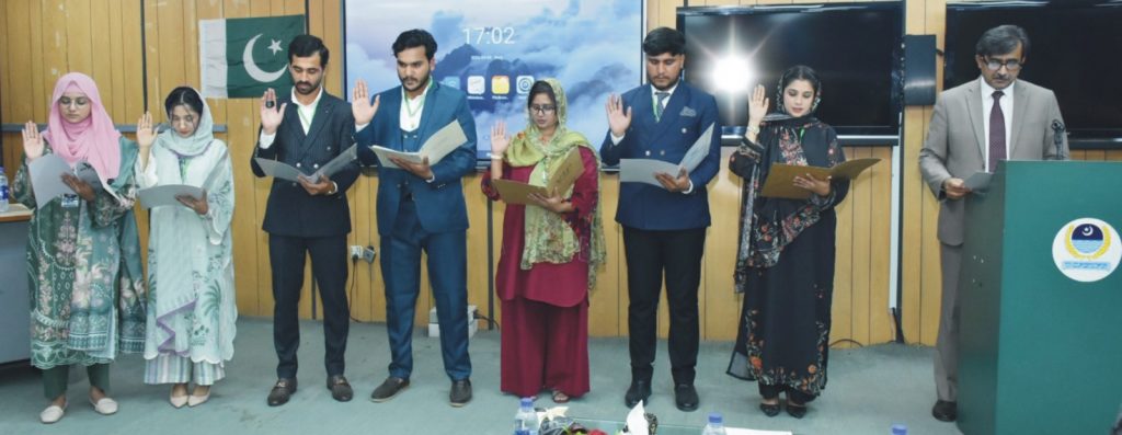 UAF Vice Chancellor Prof Dr Zulfiqar Ali along with Dean Faculty of Agriculture Prof Dr Ghulam Murtaza, Convener and Chairman Entomology Prof Dr Waseem Akram, Secretary Advisory Board Prof Dr Nadeem Abbas, administrated the oath.