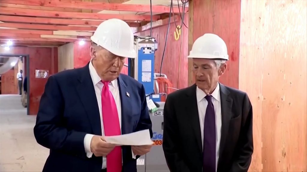 Washington D.C President Trump arrived at the Federal Reserve headquarters to tour a $2.5 billion renovation project involving two historic