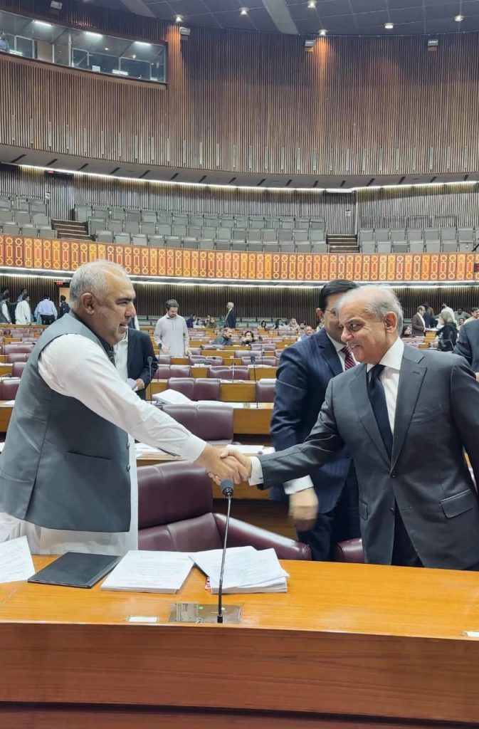 During the National Assembly session, Prime Minister Muhammad Shehbaz Sharif personally approached the opposition benches and greeted PTI leader Asad