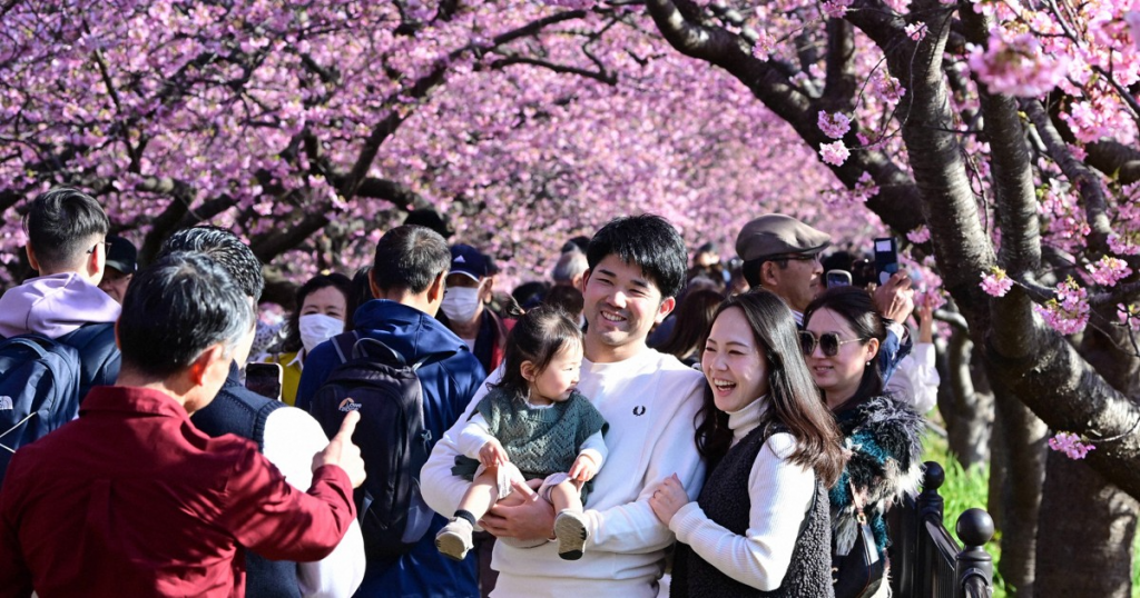 The scenic Kawazu River in Shizuoka Prefecture, Japan, is now adorned with early-blooming cherry blossoms, offering a breathtaking view of