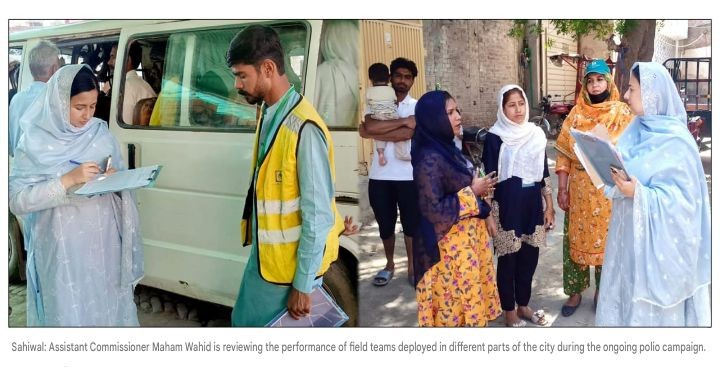 Assistant Commissioner Maham Wahid visited various residential areas and bus and wagon stands to review the performance of field teams of Tehsil Sahiwal in connection with the ongoing polio campaign across the district.